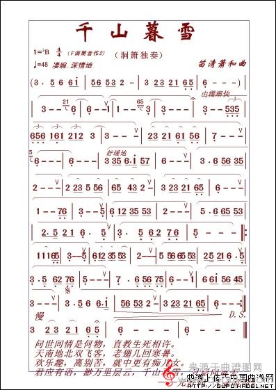 曲谱图网为您提供千山暮雪曲谱(千山暮雪洞箫独奏简谱)找谱子,就上曲谱图网。