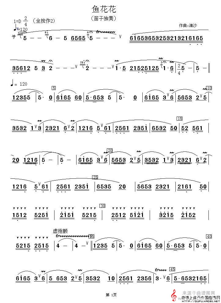 曲谱图网为您提供鱼花花简谱(鱼花花笛子独奏简谱)找谱子,就上曲谱图网。