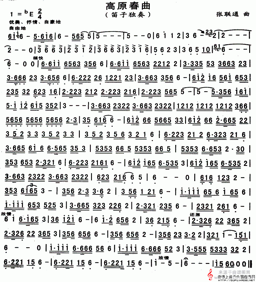 曲谱图网为您提供高原春曲简谱(高原春曲笛子独奏曲谱)找谱子,就上曲谱图网。