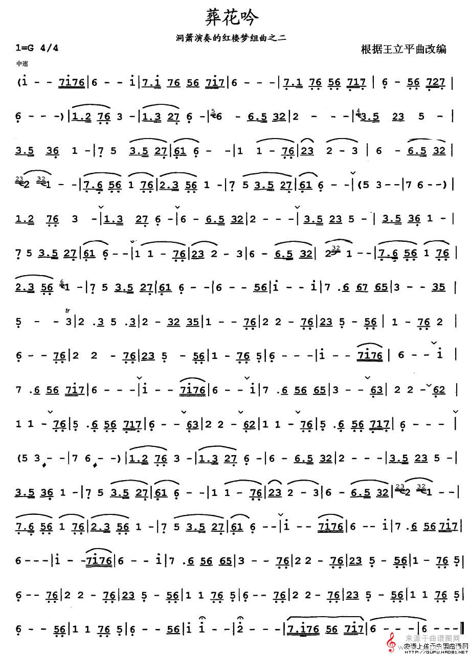 曲谱图网为您提供葬花吟简谱(葬花吟洞箫演奏曲谱)找谱子,就上曲谱图网。
