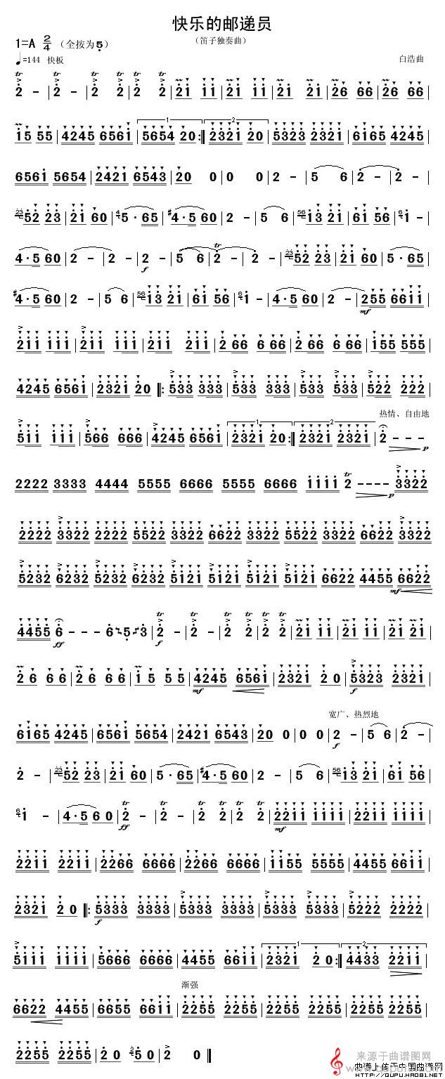 曲谱图网为您提供快乐的邮递员简谱(快乐的邮递员笛子独奏简谱)找谱子,就上曲谱图网。