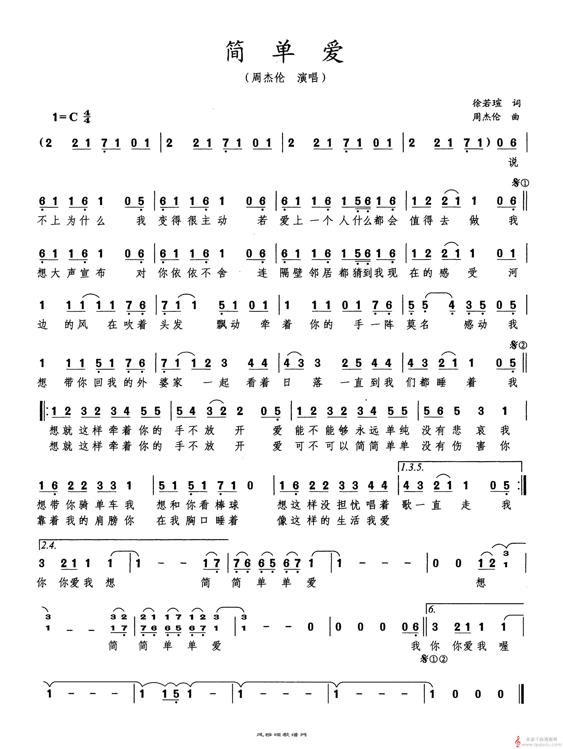 曲谱图网为您提供简单爱曲谱(简单爱笛子独奏简谱)找谱子,就上曲谱图网。