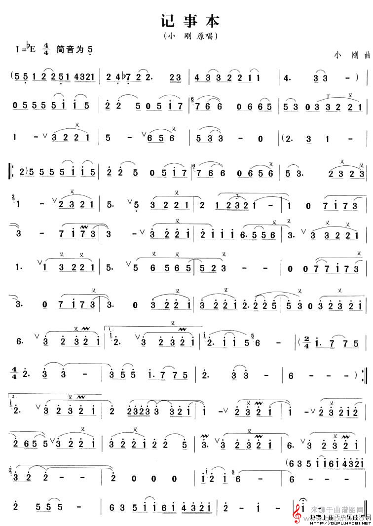 曲谱图网为您提供记事本简谱(记事本笛子独奏简谱)找谱子,就上曲谱图网。