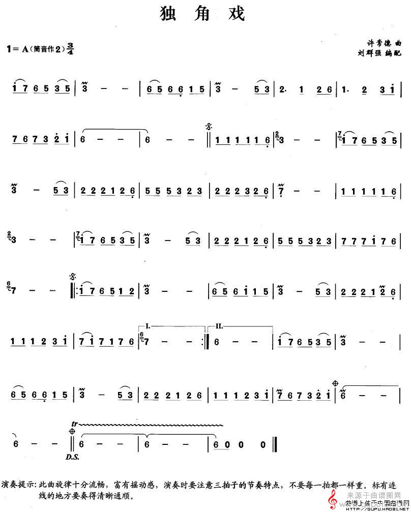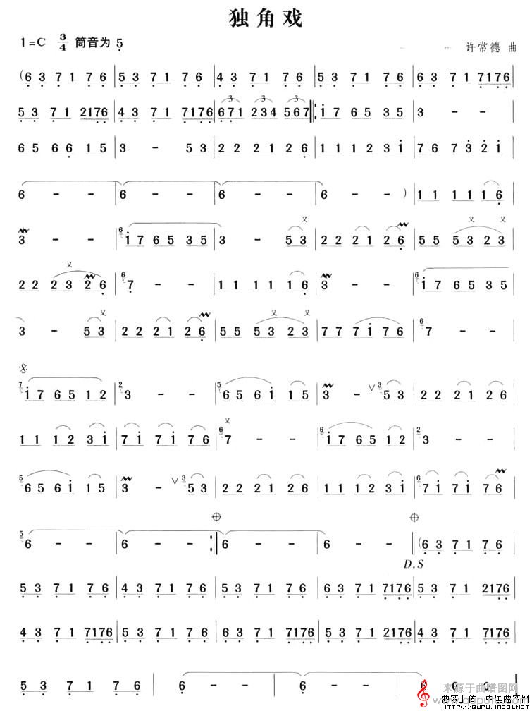 曲谱图网为您提供独角戏简谱(独角戏笛子演奏简谱)找谱子,就上曲谱图网。