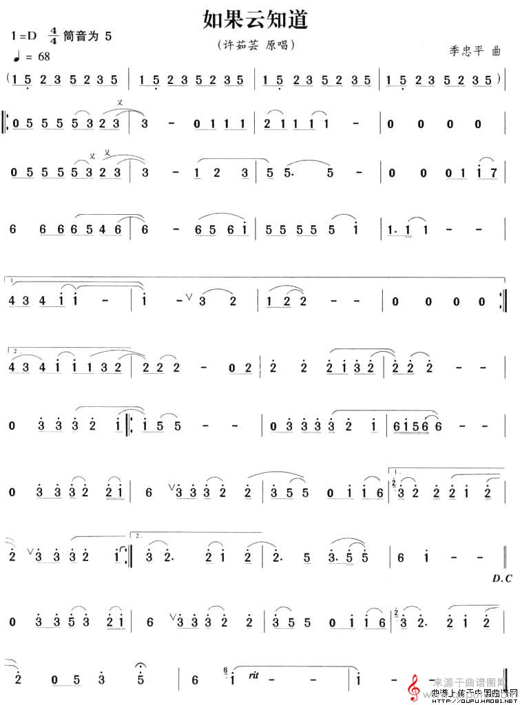 曲谱图网为您提供如果云知道曲谱(如果云知道笛子独奏简谱)找谱子,就上曲谱图网。
