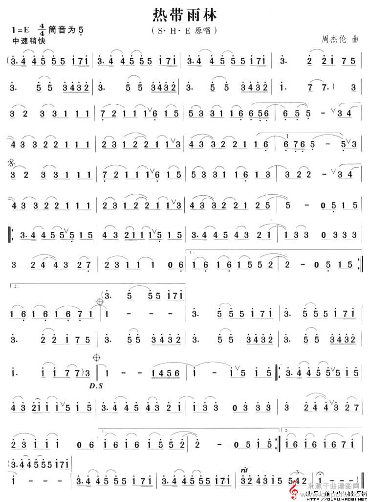 曲谱图网为您提供热带雨林曲谱(热带雨林笛箫乐曲曲谱)找谱子,就上曲谱图网。