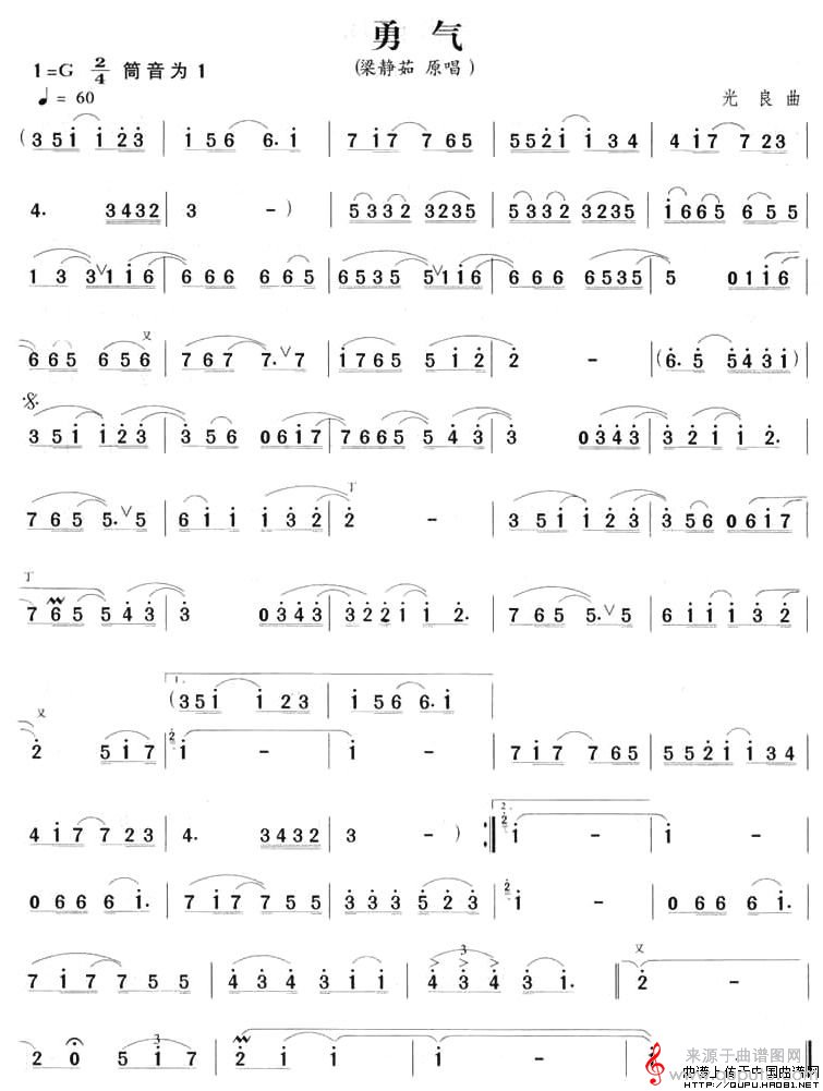 勇气简谱(勇气竹笛独奏曲谱)