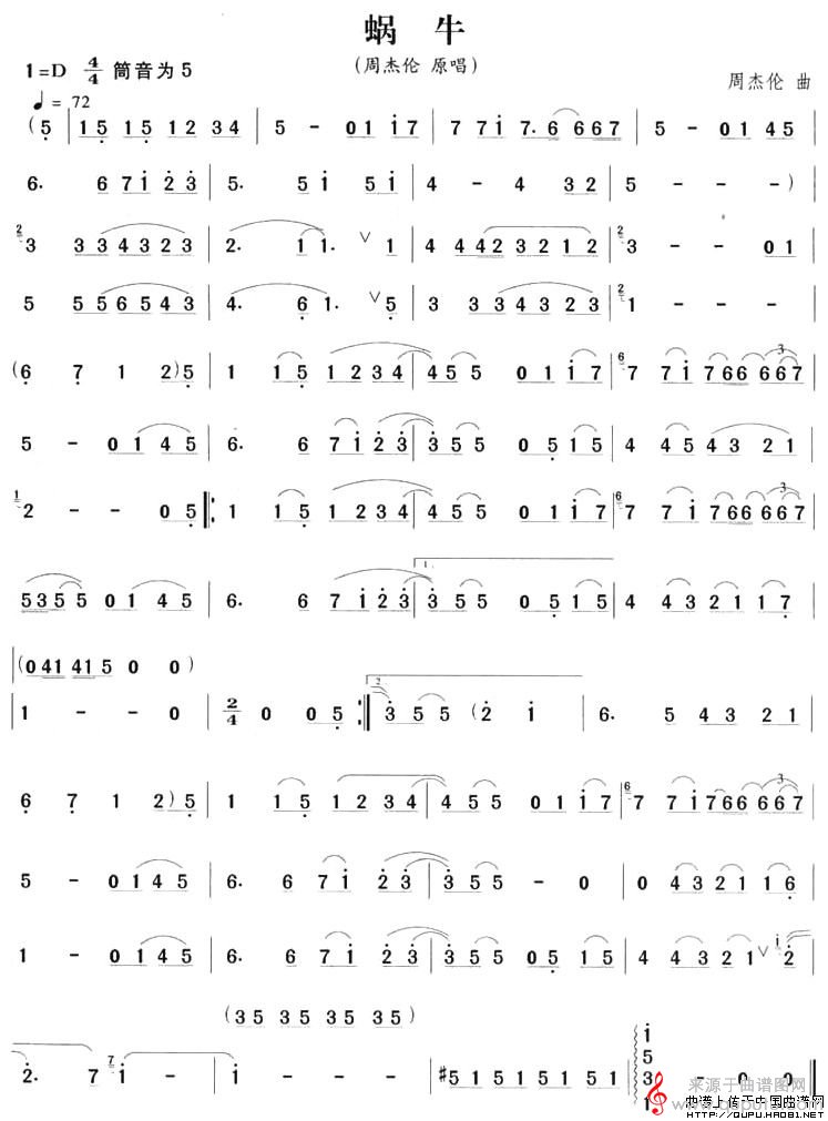曲谱图网为您提供蜗牛简谱(蜗牛笛箫乐曲简谱)找谱子,就上曲谱图网。