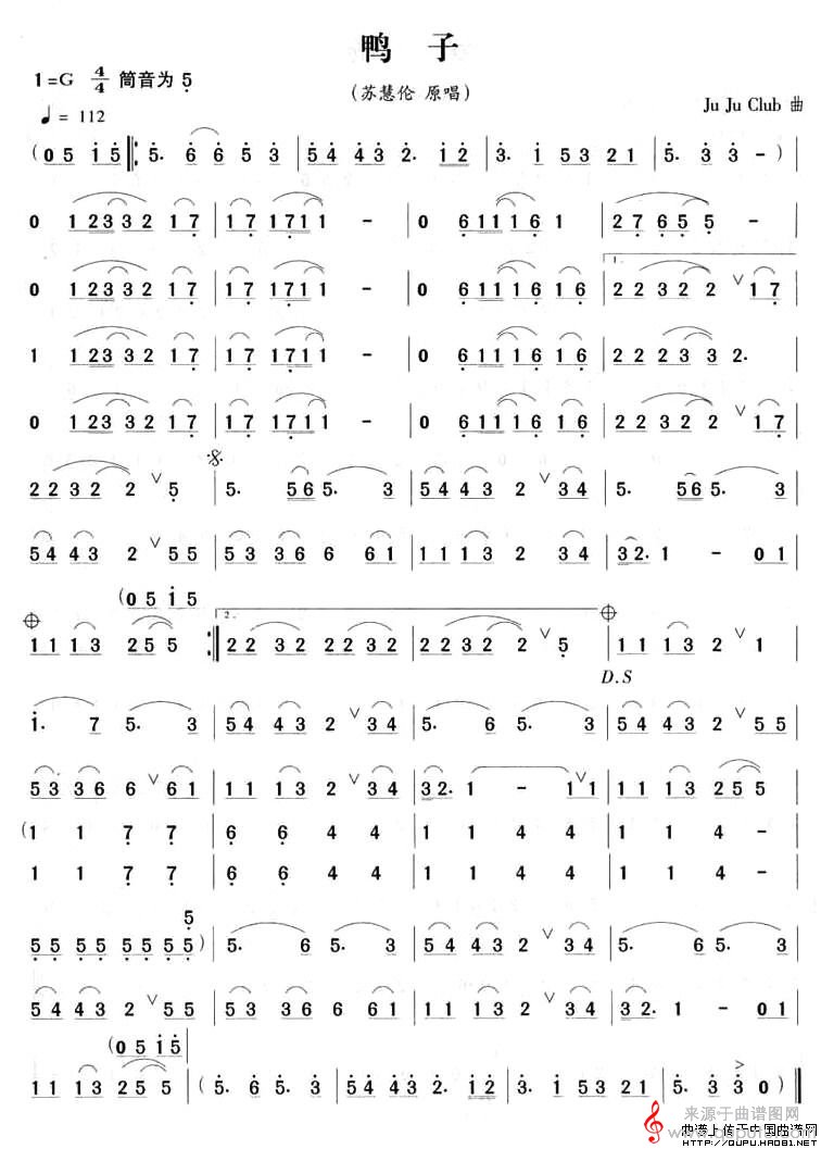 曲谱图网为您提供鸭子歌曲曲谱(鸭子笛箫乐曲谱)找谱子,就上曲谱图网。