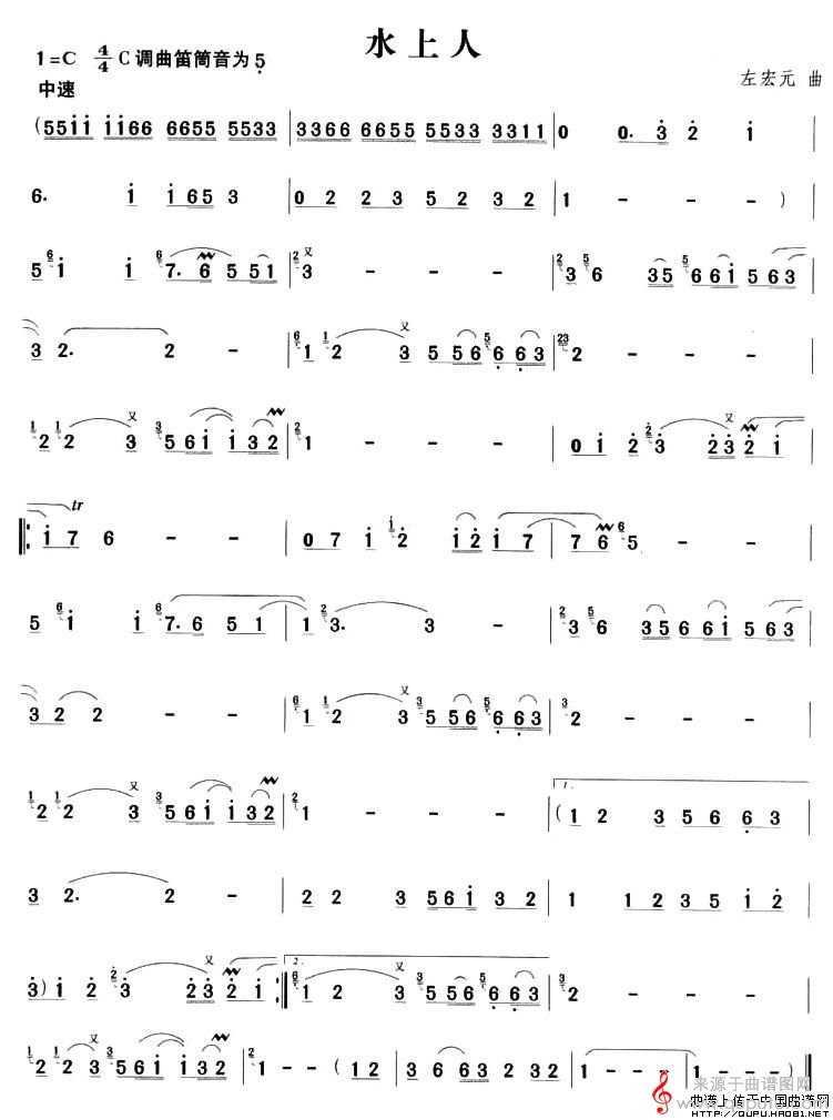 曲谱图网为您提供水上人歌曲曲谱(水上人长笛演奏简谱)找谱子,就上曲谱图网。
