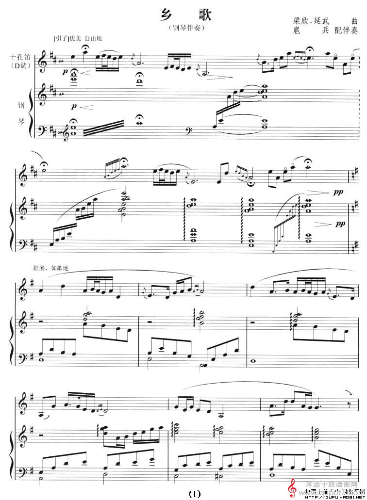 曲谱图网为您提供乡歌简谱(乡歌十孔笛+钢琴演奏简谱)找谱子,就上曲谱图网。