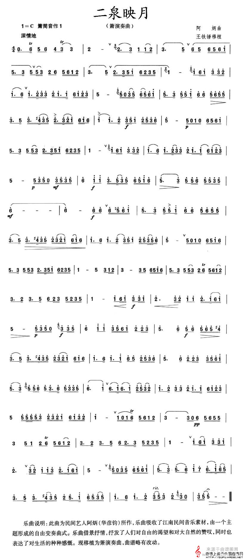曲谱图网为您提供二泉映月简谱(二泉映月箫演奏曲曲谱)找谱子,就上曲谱图网。