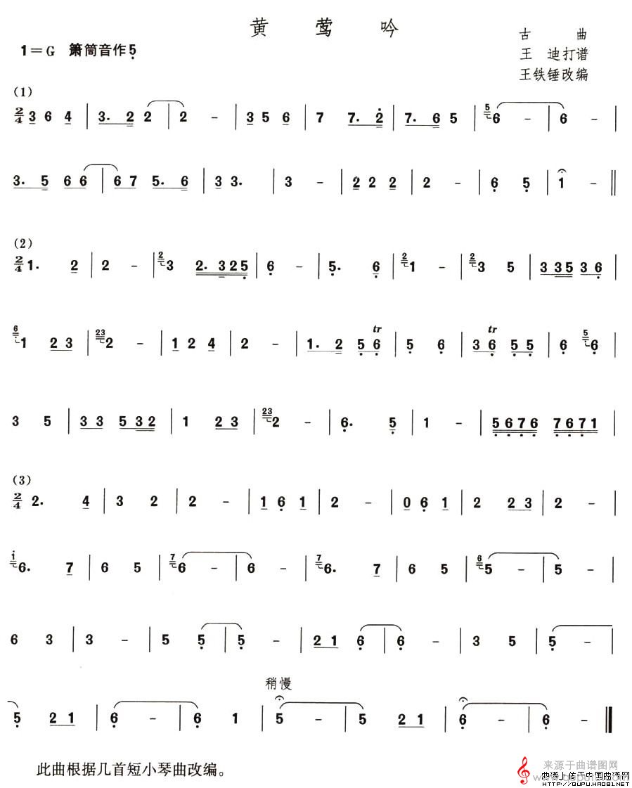 曲谱图网为您提供黄莺吟曲谱(黄莺吟箫曲曲谱)找谱子,就上曲谱图网。
