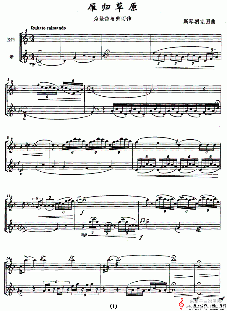 雁归草原简谱(竖笛+箫 [五线谱])(雁归草原竖笛与琴合奏简谱)