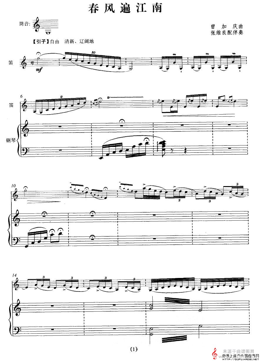 春风遍江南简谱(春风遍江南笛子与钢琴伴奏简谱)