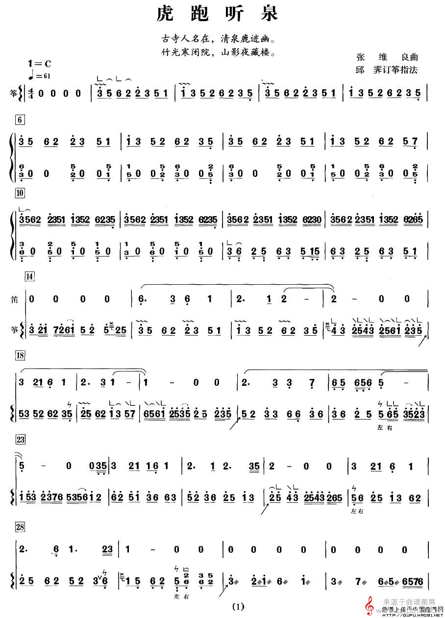 曲谱图网为您提供虎跑听泉简谱(虎跑听泉笛子与古筝演奏简谱)找谱子,就上曲谱图网。