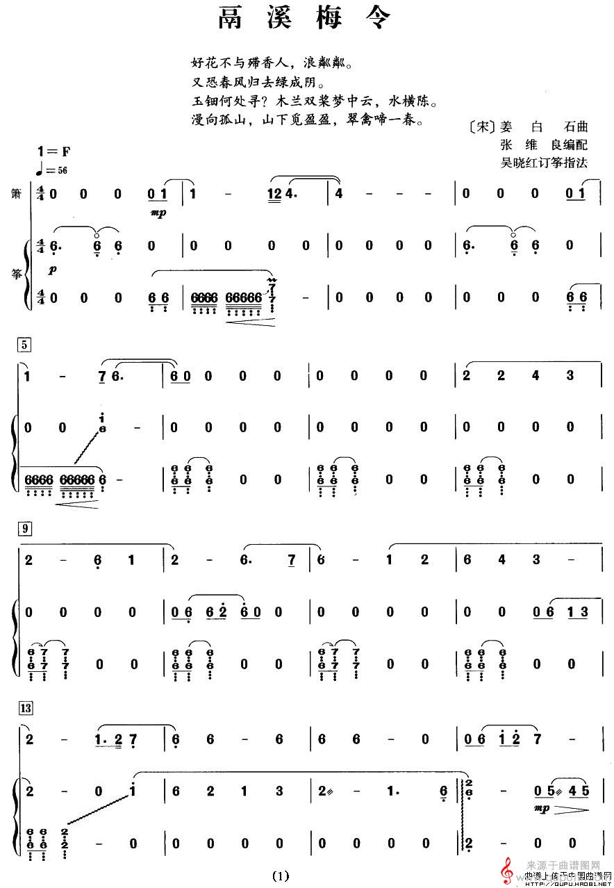 鬲溪梅令简谱(鬲溪梅令箫与古筝合奏曲谱)