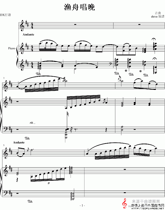 曲谱图网为您提供渔舟唱晚简谱(渔舟唱晚笛子与钢琴合奏曲谱)找谱子,就上曲谱图网。