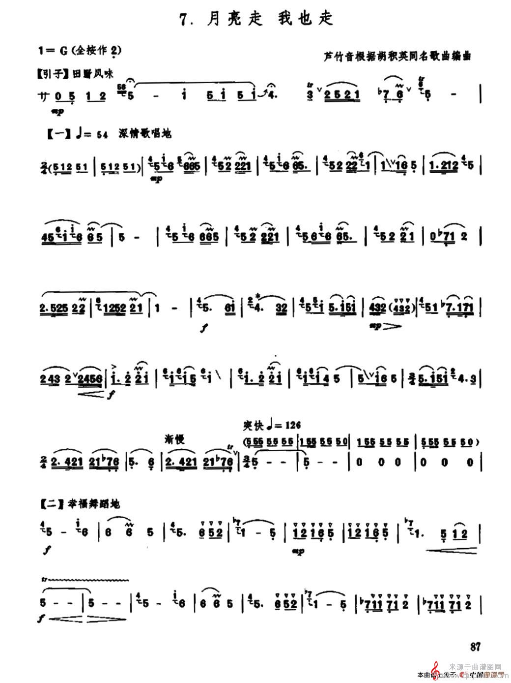 月亮走,我也走简谱(月亮走,我也走笛子演奏曲谱)