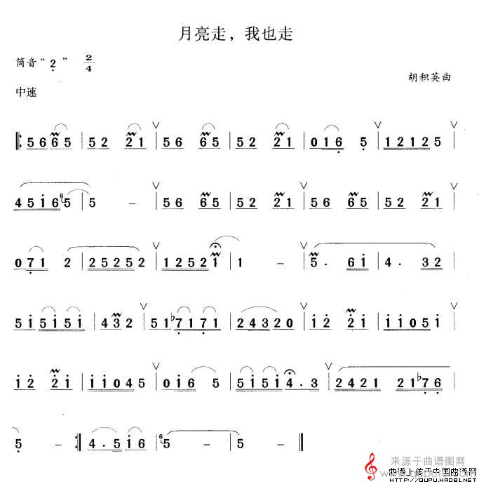 曲谱图网为您提供月亮走,我也走简谱(月亮走,我也走笛子演奏曲谱)找谱子,就上曲谱图网。