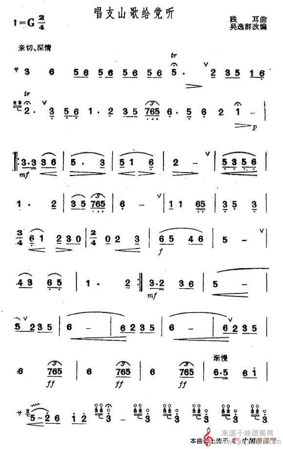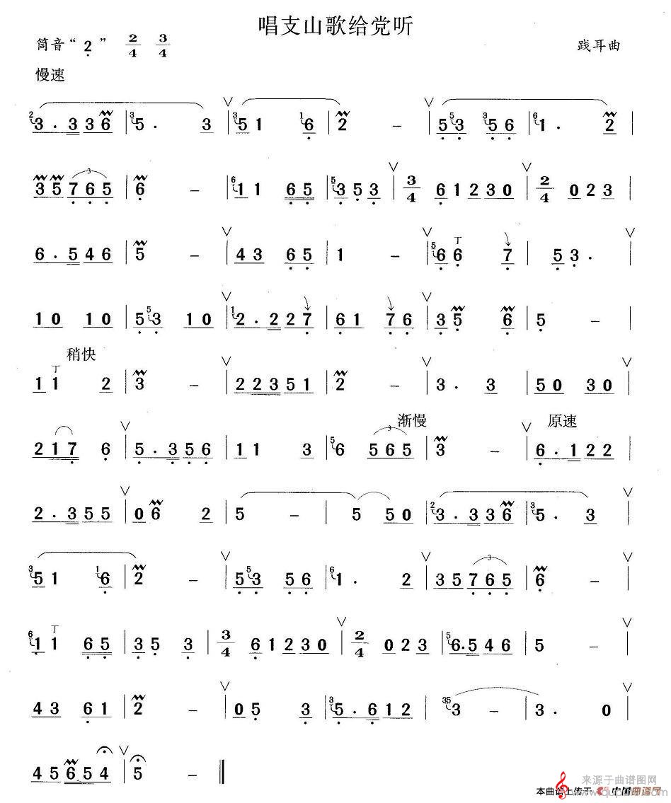 曲谱图网为您提供唱支山歌给党听简谱(唱支山歌给党听笛子演奏曲谱)找谱子,就上曲谱图网。