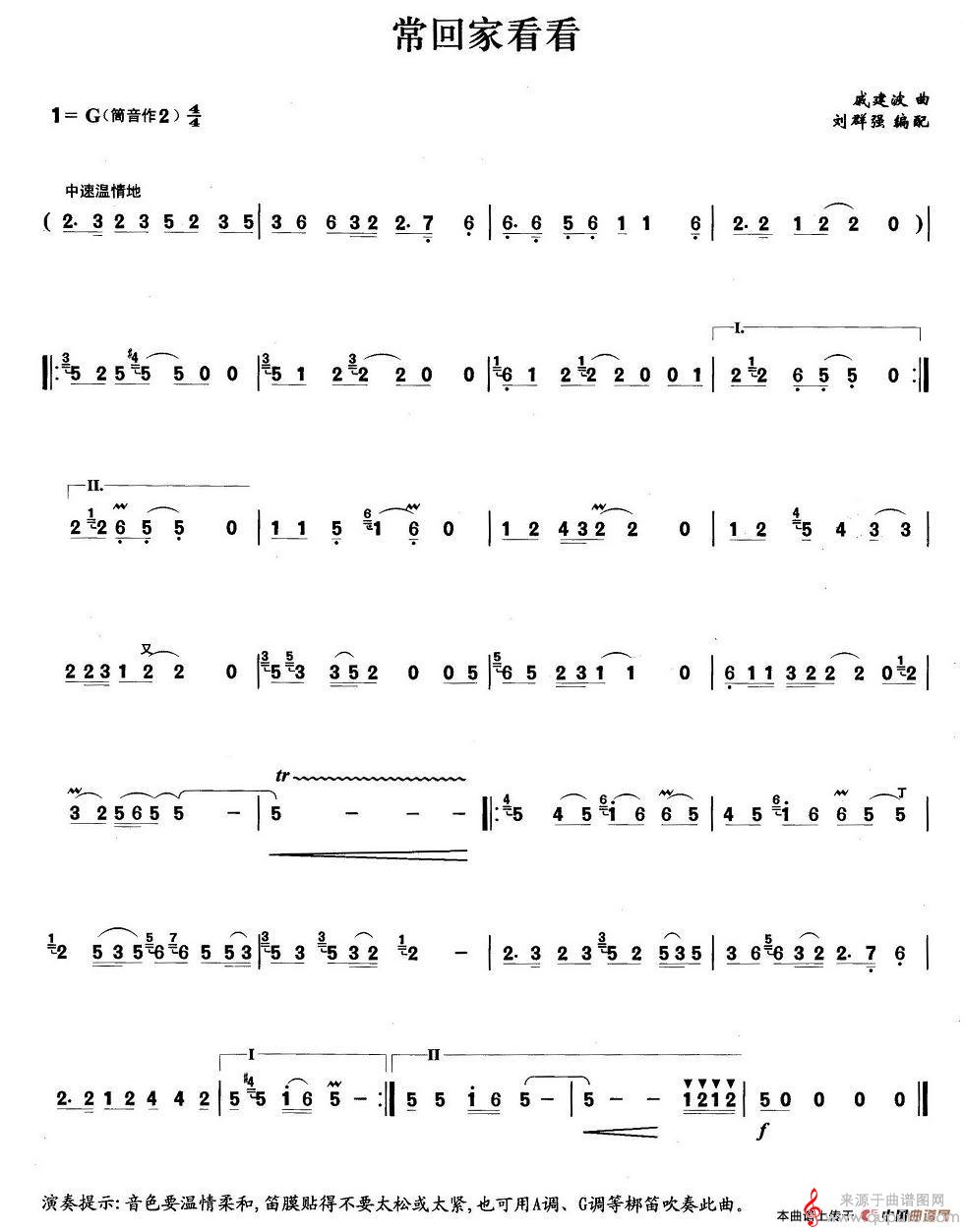 常回家看看歌曲简谱(常回家看看笛子独奏简谱)