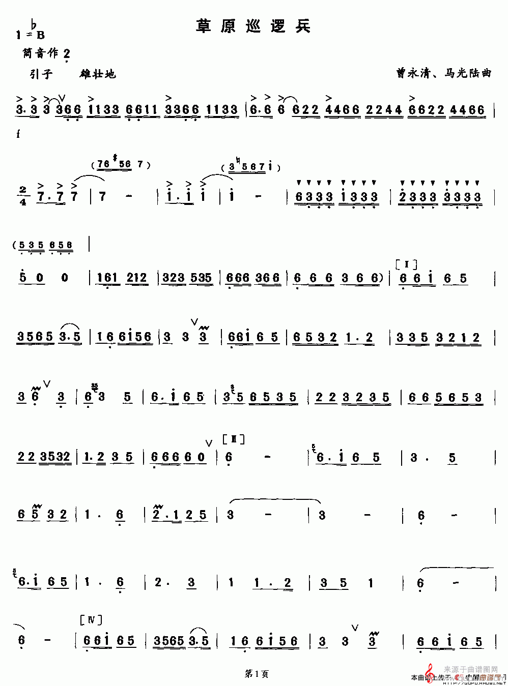 曲谱图网为您提供草原巡逻兵曲谱(草原巡逻兵笛子独奏简谱)找谱子,就上曲谱图网。