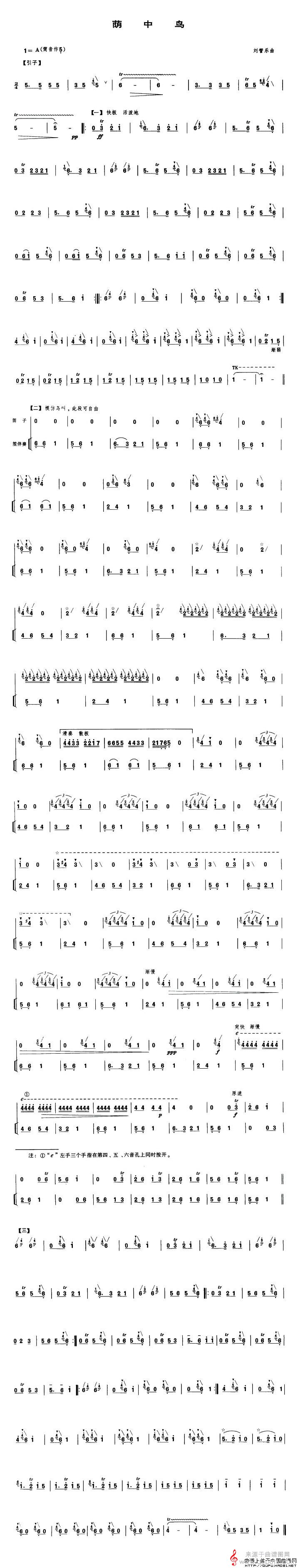 荫中鸟曲谱(荫中鸟笛子独奏简谱)