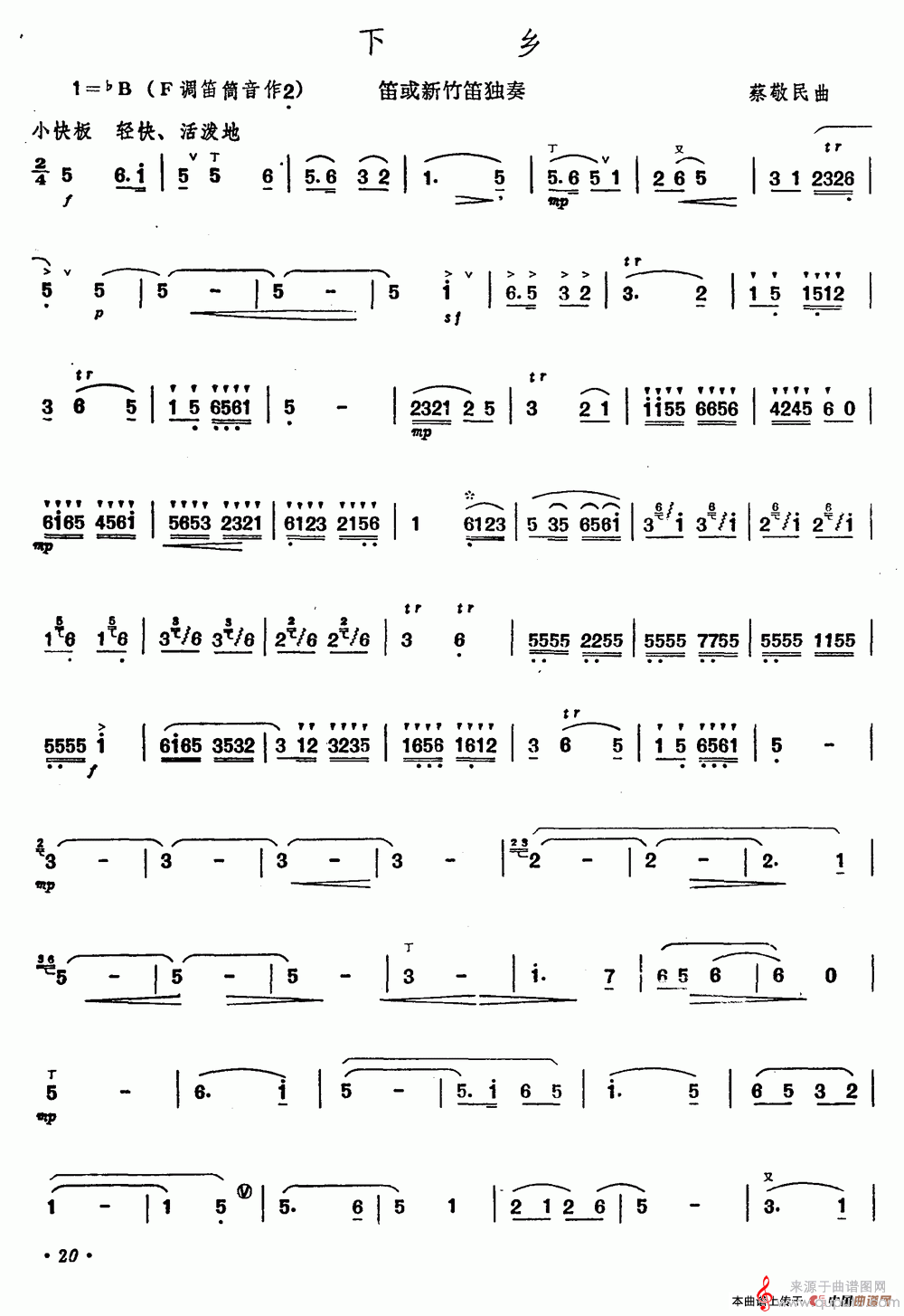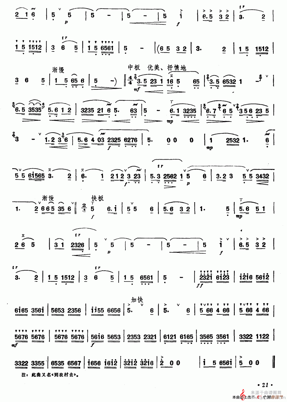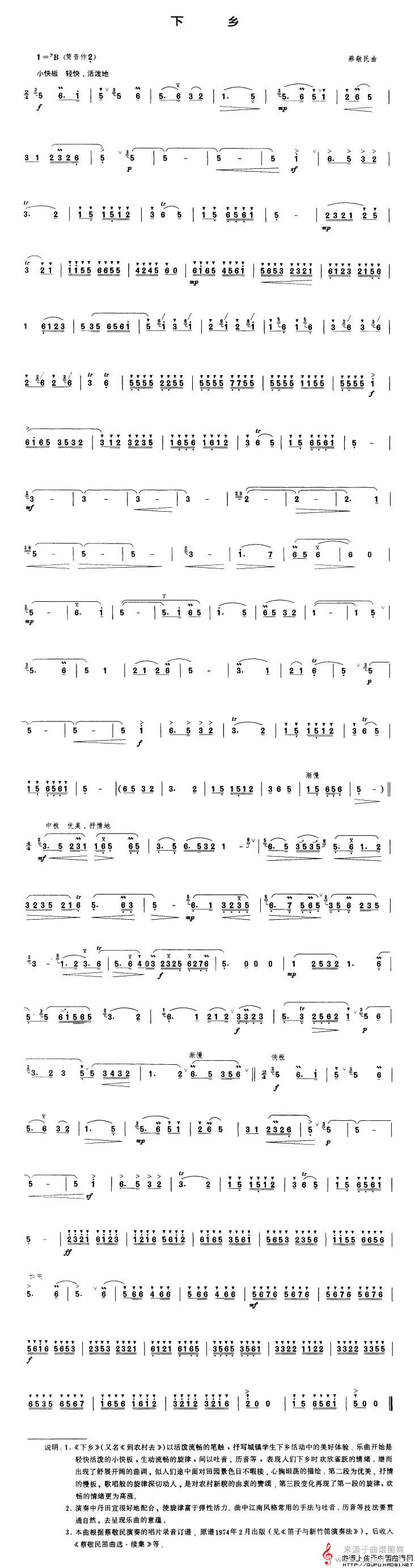 下乡(又名:到农村去)简谱(下乡(又名:到农村去)笛或新竹笛演奏)