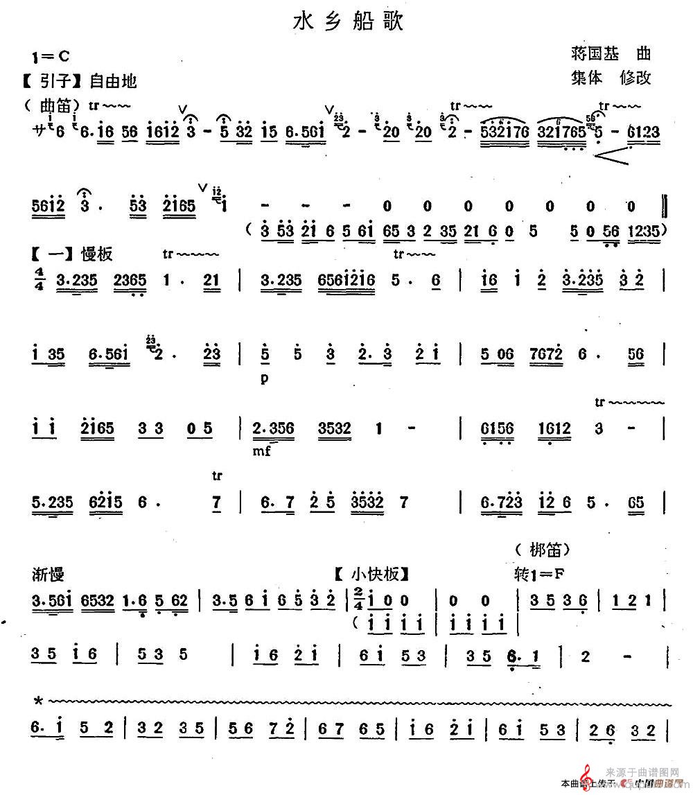 水乡船歌歌曲简谱(水乡船歌曲笛演奏简谱)