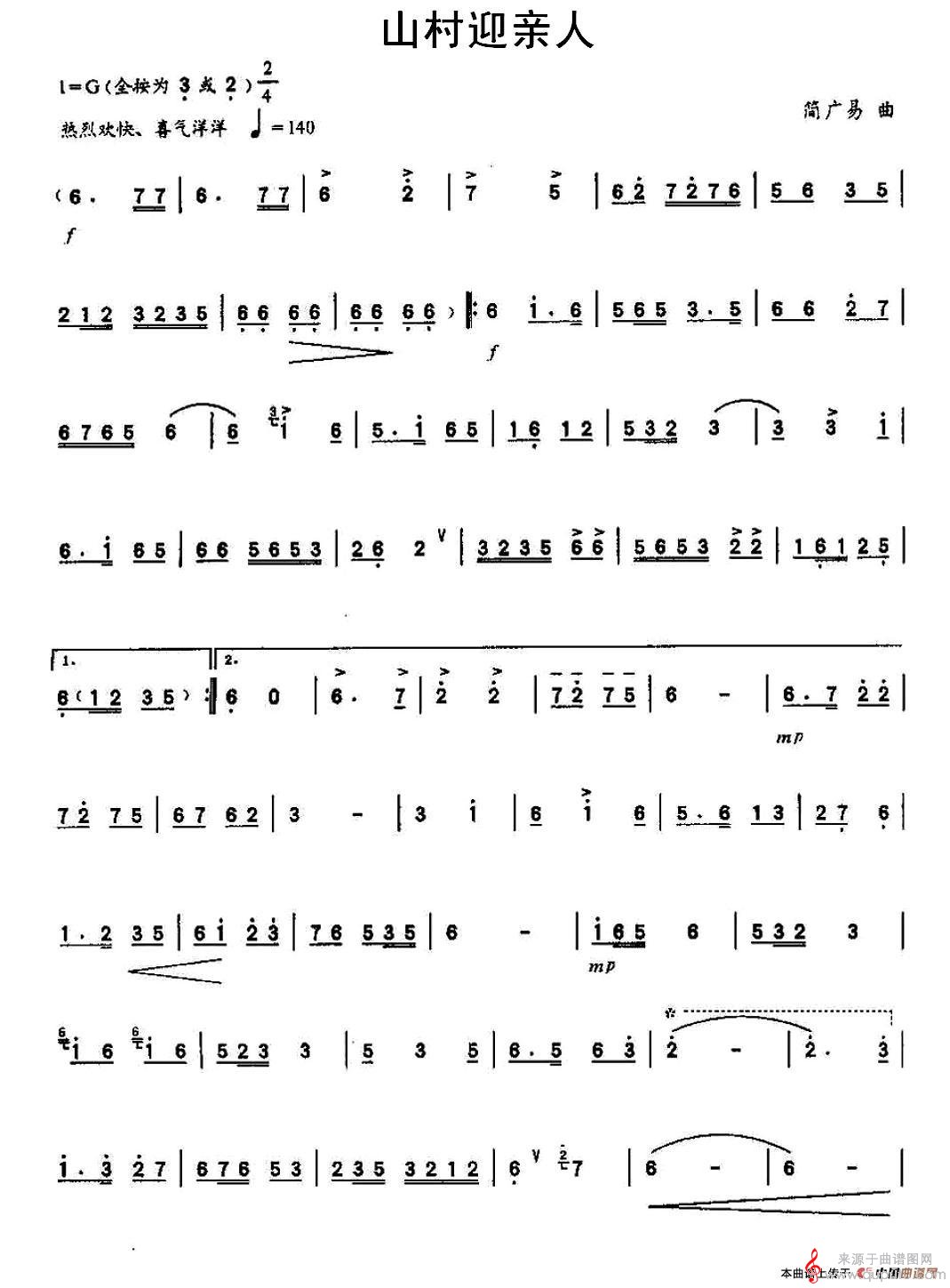曲谱图网为您提供山村迎亲人简谱(山村迎亲人笛子独奏简谱)找谱子,就上曲谱图网。