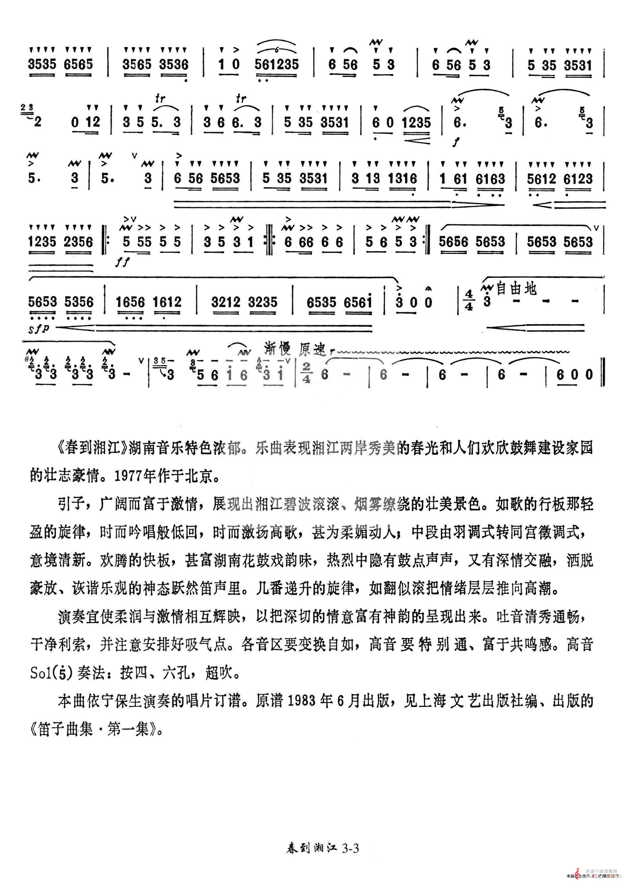 春到湘江简谱(春到湘江笛箫乐曲曲谱)