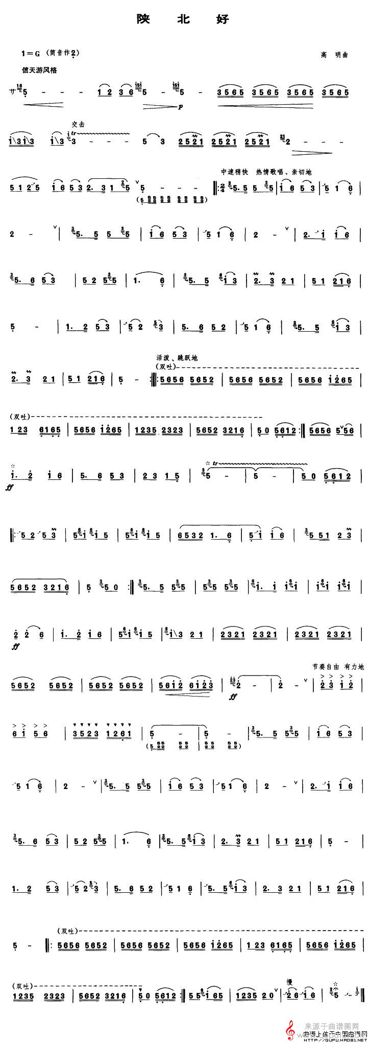 曲谱图网为您提供陕北好曲谱(陕北好笛子独奏简谱)找谱子,就上曲谱图网。