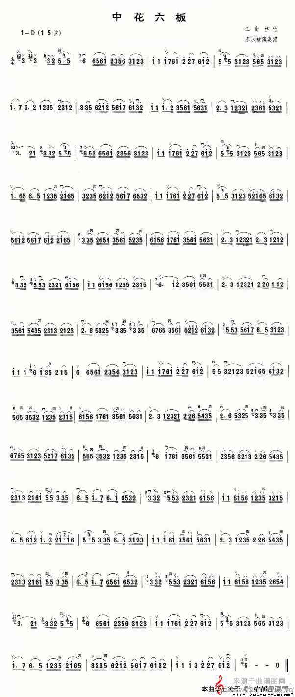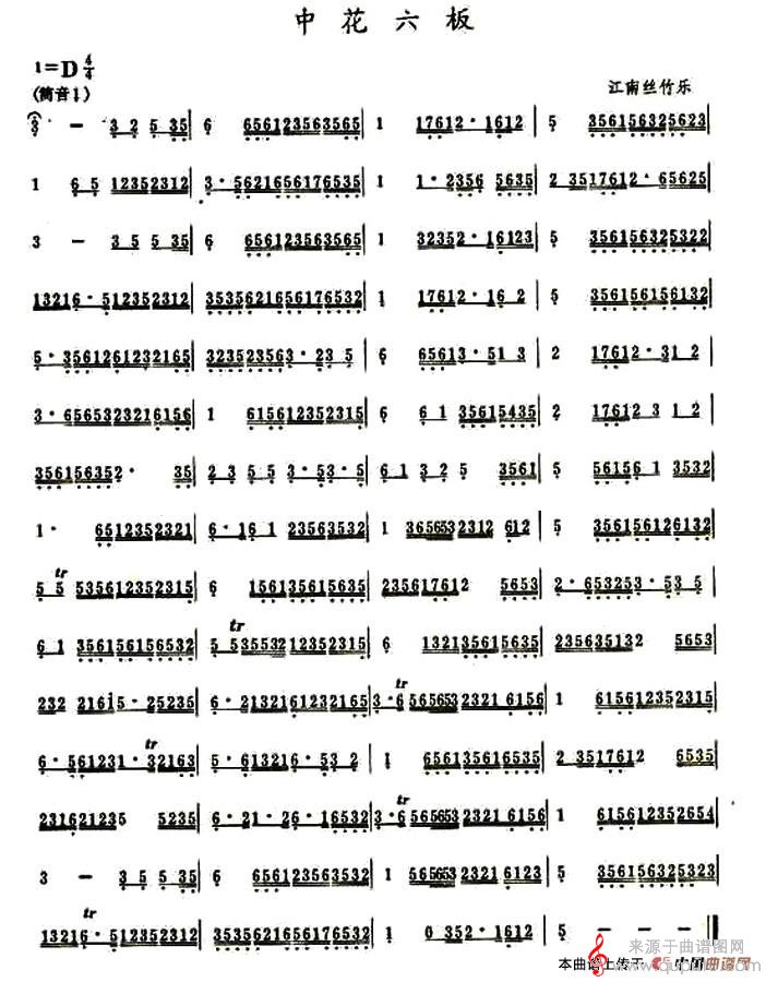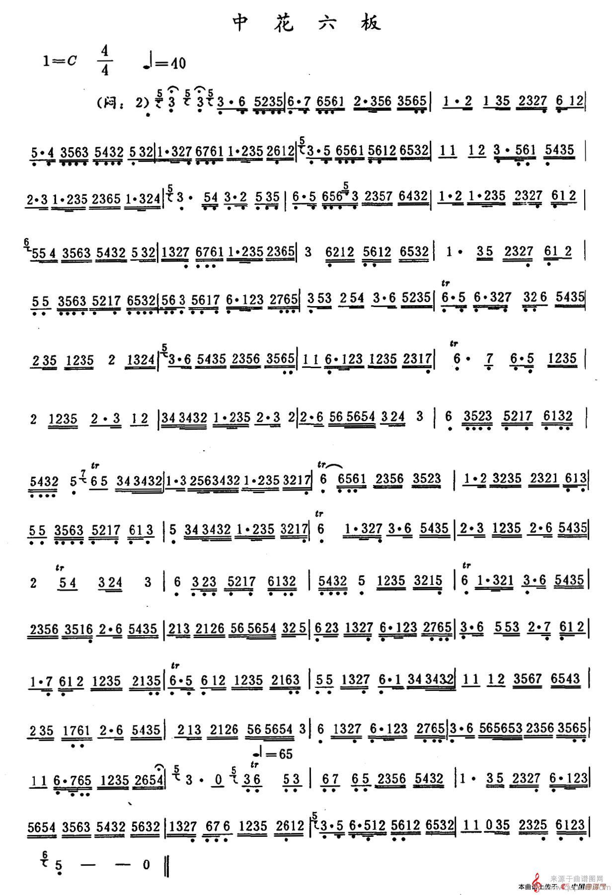 曲谱图网为您提供中花六板简谱(中花六板丝竹演奏曲谱)找谱子,就上曲谱图网。