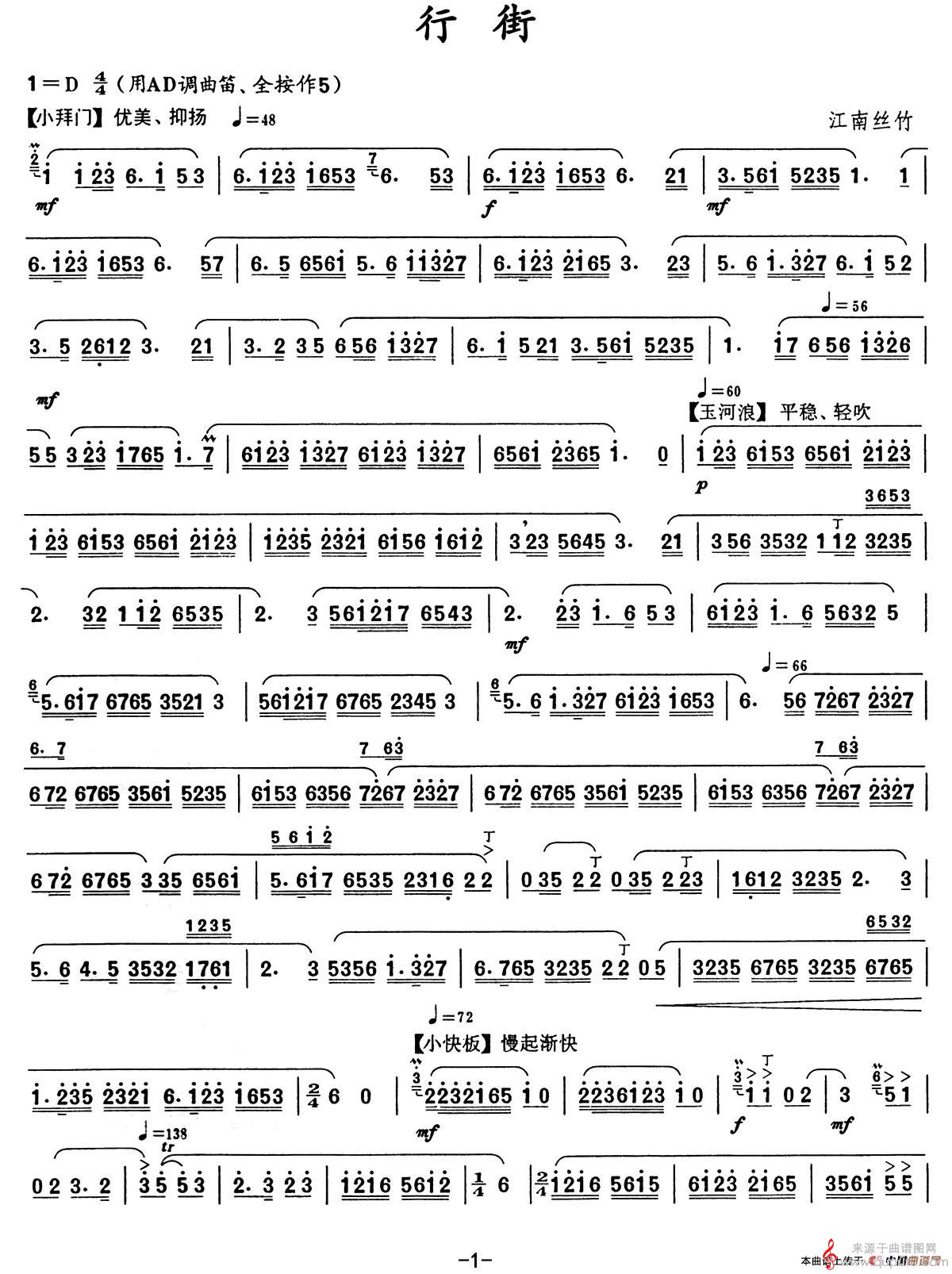 曲谱图网为您提供行街简谱(行街笛子独奏简谱)找谱子,就上曲谱图网。