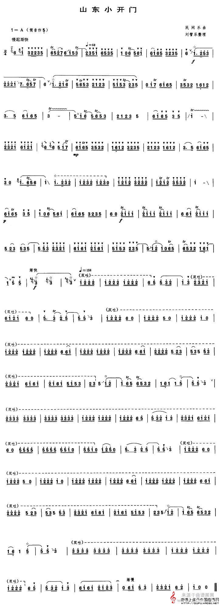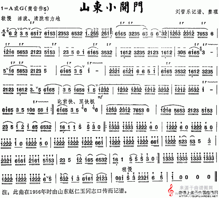 山东小开门攷(山东小开门笛子伴奏简谱)