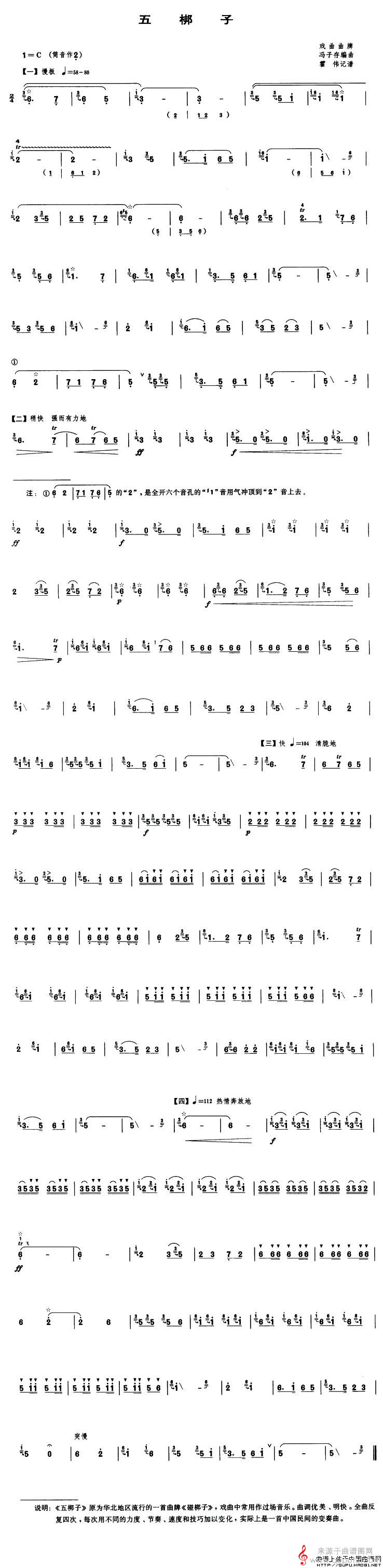 曲谱图网为您提供五梆子戏曲曲谱(五梆子笛子独奏简谱)找谱子,就上曲谱图网。