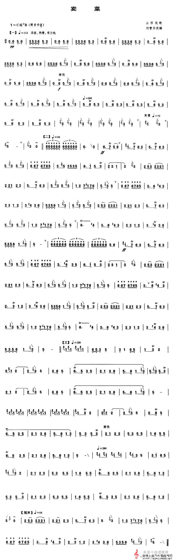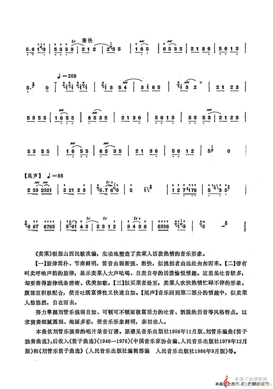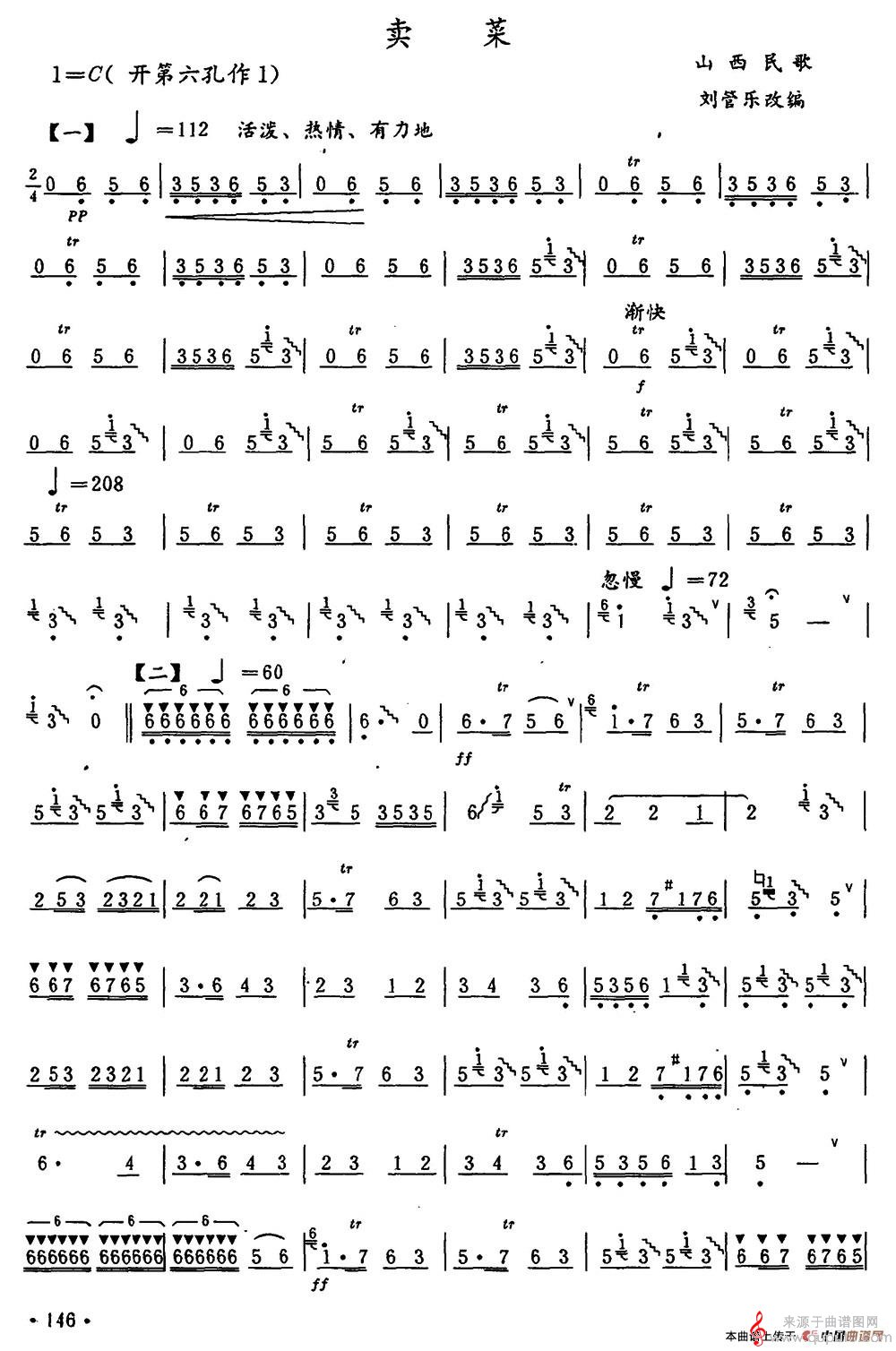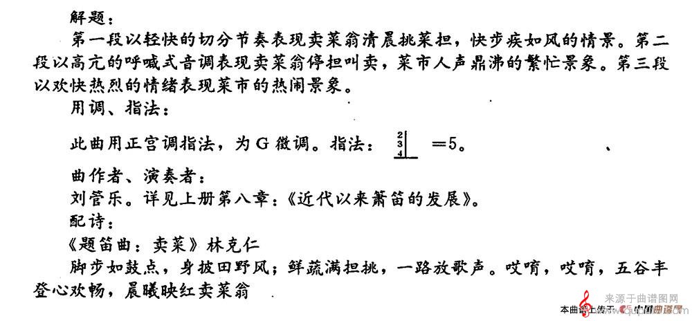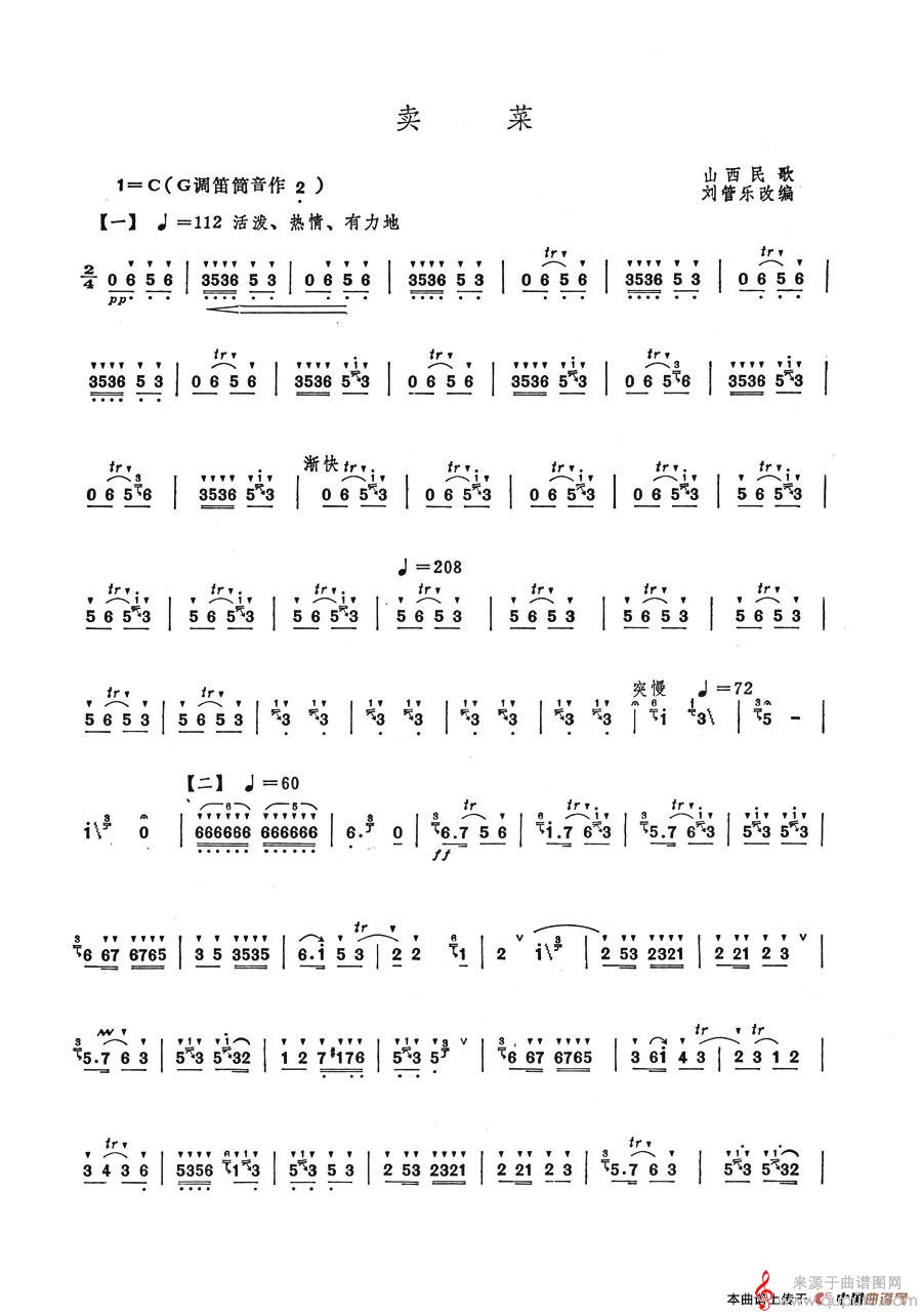 曲谱图网为您提供卖菜简谱(卖菜箫笛演奏简谱)找谱子,就上曲谱图网。