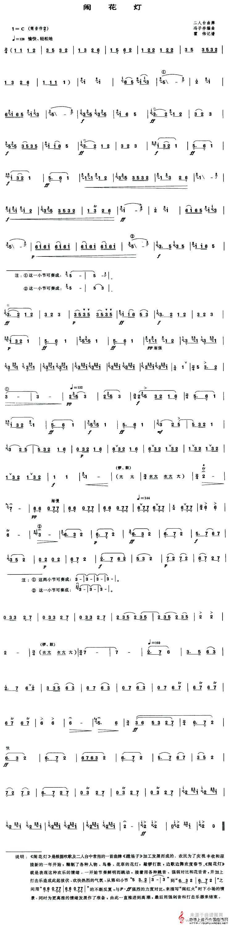 闹花灯简谱(闹花灯笛子独奏曲谱)