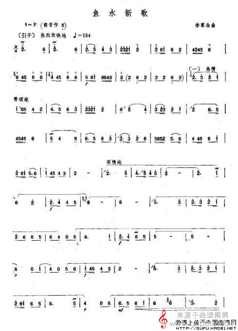 曲谱图网为您提供鱼水新歌简谱(鱼水新歌笛箫乐曲曲谱)找谱子,就上曲谱图网。