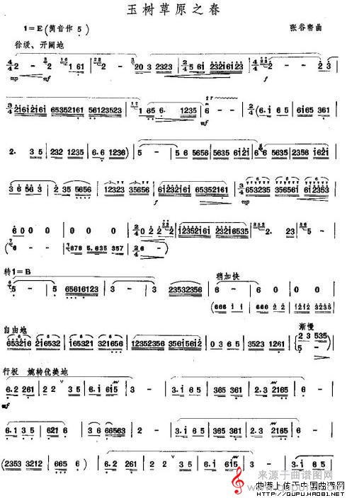 曲谱图网为您提供玉树草原之春曲谱(玉树草原之春笛子独奏简谱)找谱子,就上曲谱图网。