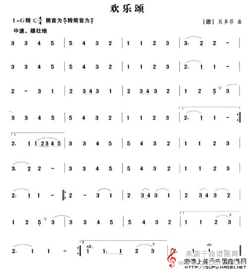 曲谱图网为您提供欢乐颂简谱(欢乐颂竹笛独奏简谱)找谱子,就上曲谱图网。