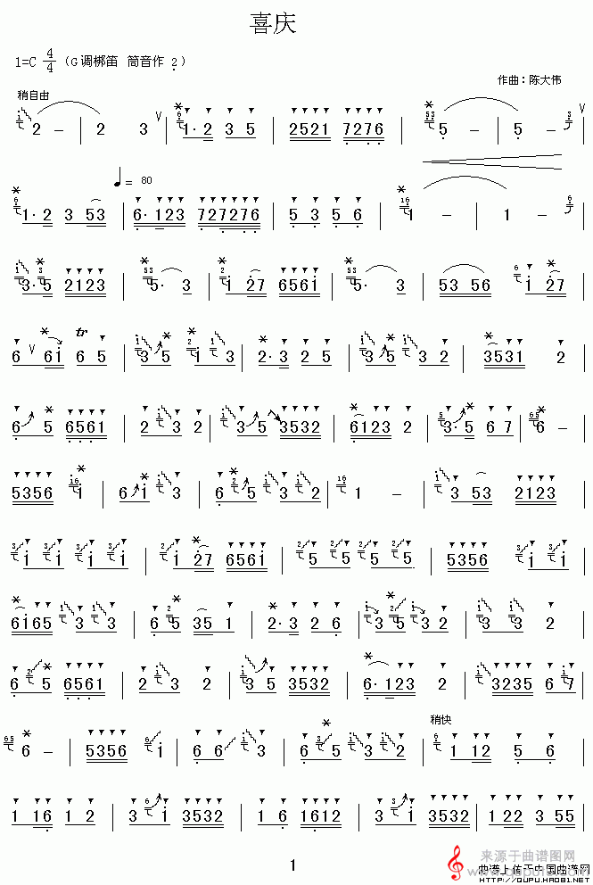 喜庆(陈大伟作曲版)简谱(喜庆笛子演奏简谱)