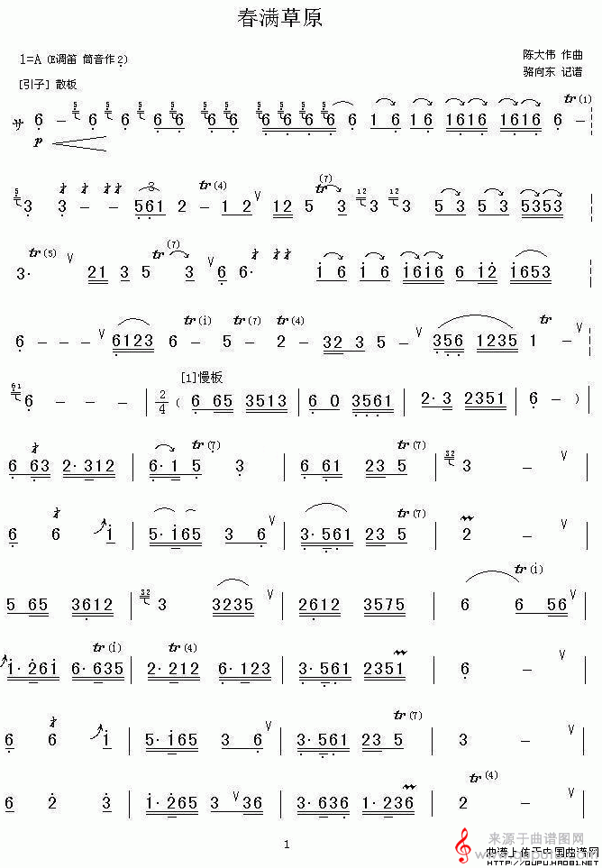 曲谱图网为您提供春满草原简谱(春满草原笛子独奏简谱)找谱子,就上曲谱图网。
