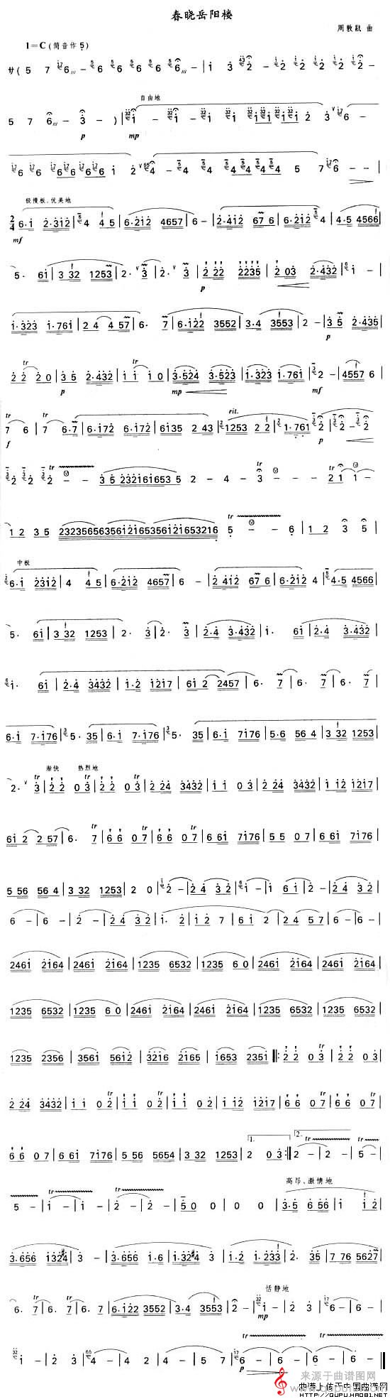春晓岳阳楼曲谱(春晓岳阳楼笛箫乐曲曲谱)