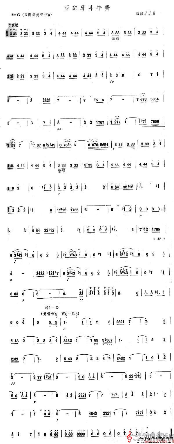 曲谱图网为您提供西班牙斗牛舞曲谱(西班牙斗牛舞笛子独奏简谱)找谱子,就上曲谱图网。