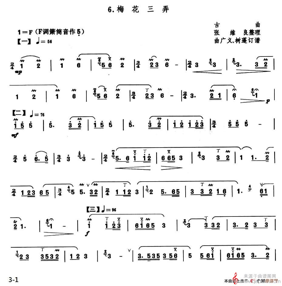 曲谱图网为您提供梅花三弄(张维良整理版)简谱(梅花三弄笛子独奏简谱)找谱子,就上曲谱图网。