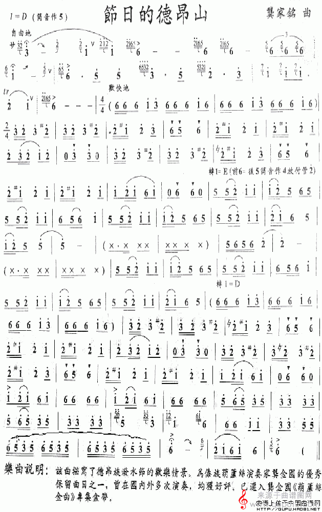 曲谱图网为您提供节日的德昂山曲谱(节日的德昂山笛箫乐曲曲谱)找谱子,就上曲谱图网。