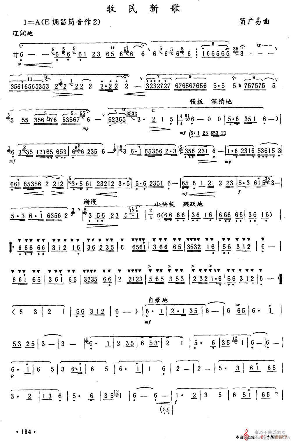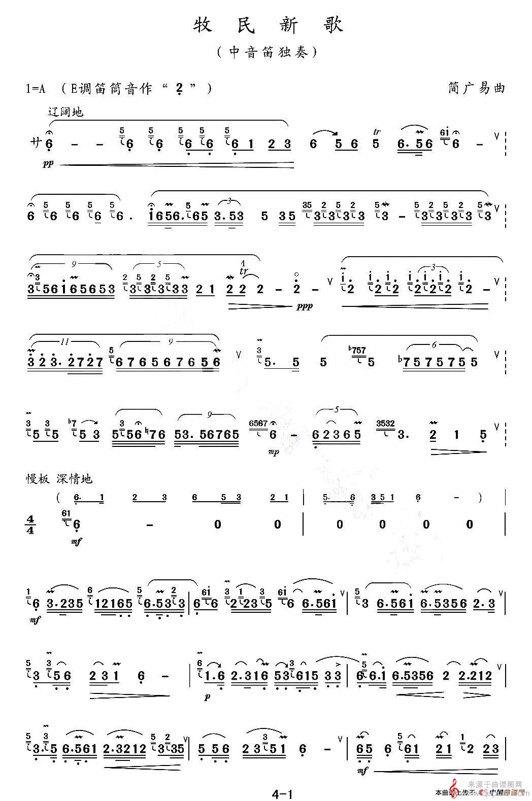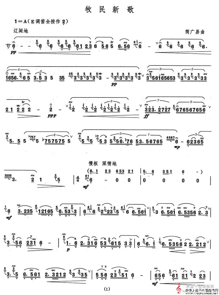 牧民新歌曲谱(牧民新歌中音笛独奏简谱)
