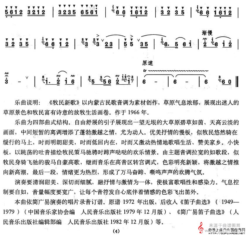 曲谱图网为您提供牧民新歌曲谱(牧民新歌中音笛独奏简谱)找谱子,就上曲谱图网。